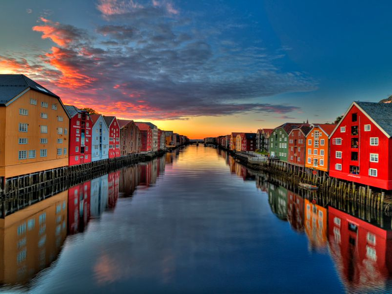 Enjoy a scenic drive to Trondheim today, appreciating the picturesque Norwegian landscapes. We will visit Nidaros Cathedral, which is Norway's national shrine and is built over the tomb of St. Olav, the Viking king who converted Norway to Christianity. Today, Norwegian monarchs are still crowned here. Afterward, we'll move on to a tour of the charming old town of Trondheim, with its colourful painted wooden buildings and cobbled streets.