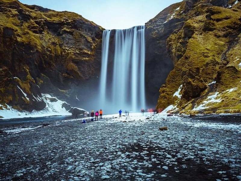After Breakfast,Travel along Iceland’s south coast by minibus, marveling at the stunning Seljalandsfoss and Skógafoss waterfalls, the black-sand Reynisfjara Beach, and the Sólheimajökull Glacier. Spot puffins and view Eyjafjallajökull volcano, witnessing the dramatic volcanic landscapes. Overnight in Reykjavik.
