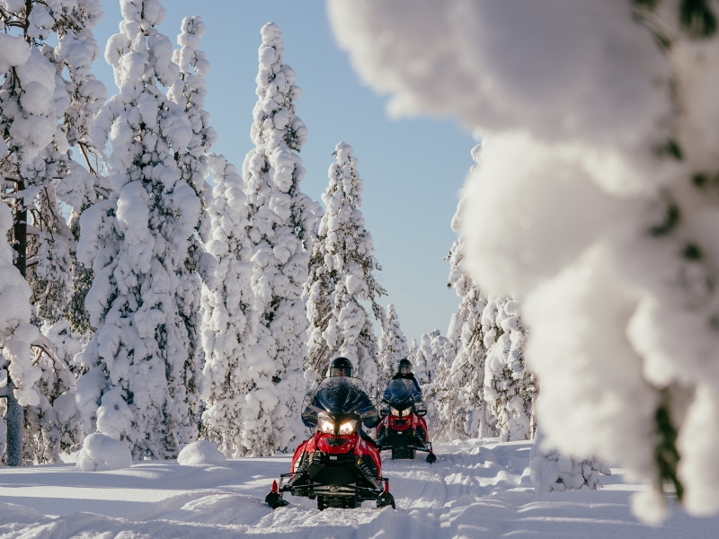 Start your day with a good breakfast. In the morning, we will pick you up and head to the beginning of your snowmobile safari. This safari is a chance for you to ride your own snowmobile through the forest trails around Santa Claus Village. Enjoy the beautiful winter scenery, and you will have a few stops to take in the snowy nature. After the snowmobiling fun, you will visit a local Reindeer Farm. Here, you will experience a short but exciting reindeer sleigh ride (about 700 metres). You will warm up in a comfortable Lappish tent called "kota," where you will be served hot Lappish berry juice and cookies. Participate in the mysterious Arctic Circle ceremony, where you will hear the Oldest Legend of Lapland. You will even receive the International Reindeer Driver’s License and the Arctic Circle Crossing Certificate. You will head back to the Arctic Circle for a buffet lunch at Santa Claus Village. After lunch, you will have free time to visit the Santa Claus Office and meet Santa on your own. Explore Santa Claus Village, send postcards from Santa’s Post Office, and check out the souvenir shops.The whole program lasts about 6 hours, with approximately 1 hour and 30-40 minutes of snowmobiling and 1 hour at the reindeer farm. For safety reasons, the average speed during the snowmobile ride is limited. Two adults will ride on one snowmobile, but if you prefer to ride alone, there is an extra charge. This tour is family-friendly, and children will travel in a sled pulled by the guide's snowmobile. After the adventure, spend the night at the hotel in Rovaniemi.