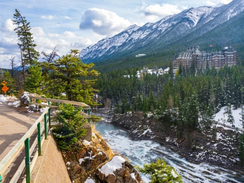 This morning, visit Bow Falls, followed by the spectacular Banff Gondola Ride to the summit of Sulphur Mountain for incredible panoramas. See Surprise Corner, admire Lake Minnewanka, and drive through beautiful Banff town. Continue to Calgary for a quick orientation tour showcasing landmarks like Calgary Tower and Canada Olympic Park. Dinner at an Indian restaurant.