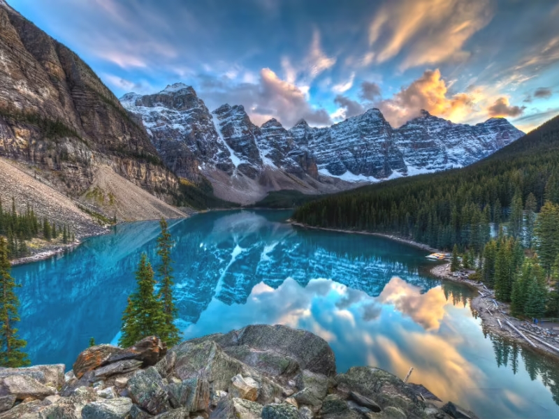 Breakfast & Departure: After breakfast, proceed to the stunning Lake Louise. Yoho National Park: Explore Yoho National Park, renowned for its towering rock walls, spectacular waterfalls, and 28 peaks over 3,000 meters. The name “Yoho” is a Cree expression of awe and wonder. Emerald Lake: Admire the breathtaking mountain peaks and vibrant wildflowers on an afternoon stroll around Emerald Lake, known for its striking gem colored waters. Natural Bridges: Marvel at the force of the Kicking Horse River as it cascades under a naturally formed stone bridge. Scenic Viewpoints: Make quick stops at scenic viewpoints including the Continental Divide, Meeting of the Rivers, and Spiral Tunnels. Dinner & Overnight: Enjoy dinner at a local Indian restaurant and overnight stay in Canmore